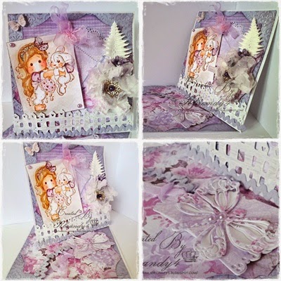Here's a twisted easel card i made using my newest Tilda and i think this one is so cute and i coloured her with Distress inks!